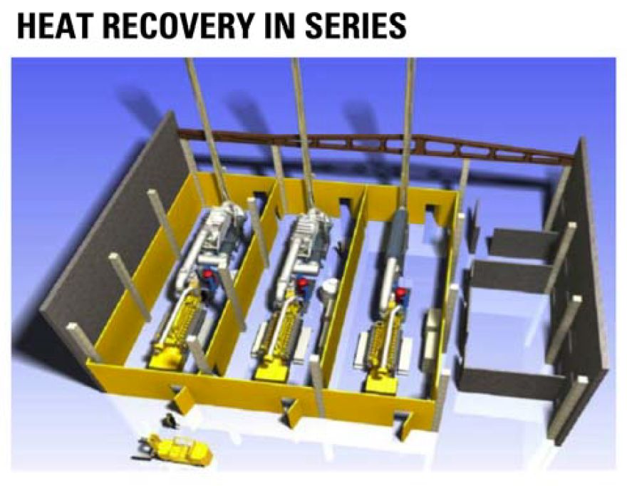 Heat-recovery systems can be configured to deploy some heat for water and steam production and the balance to absorption chillers or steam-turbine-driven chillers – a concept called tri-generation. Alternatively, systems can produce space heat in winter and air conditioning in summer.