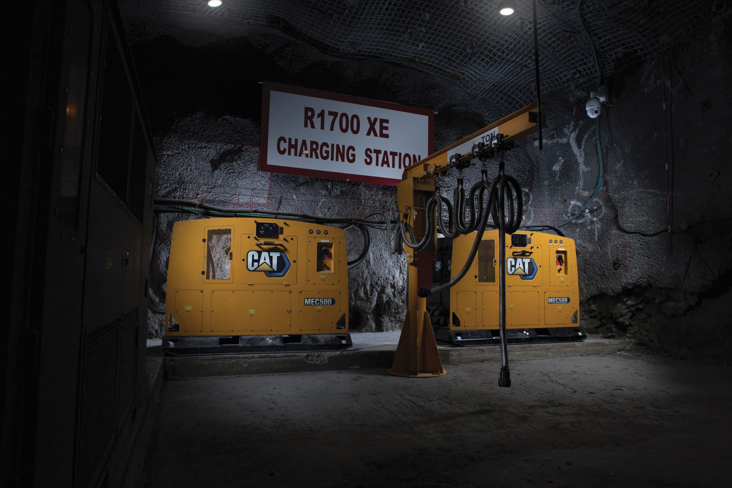 Caterpillar’s underground Cat R1700 XE load-haul-dump (LHD) loader features battery-electric propulsion that produces zero exhaust emissions and generates less heat than a reciprocating engine powered model. The Cat R2900 XE LHD provides a high efficiency switch reluctance electric drive system that meets the mining industry’s needs for bigger payloads, faster loading and lower emissions. The 12.2-m-long (40-ft-long) PGS 1260 HD Energy Storage System (ESS) module offers energy storage for charging battery electric machines, and the MEC500 provides mobile equipment charging for the underground mining industry.