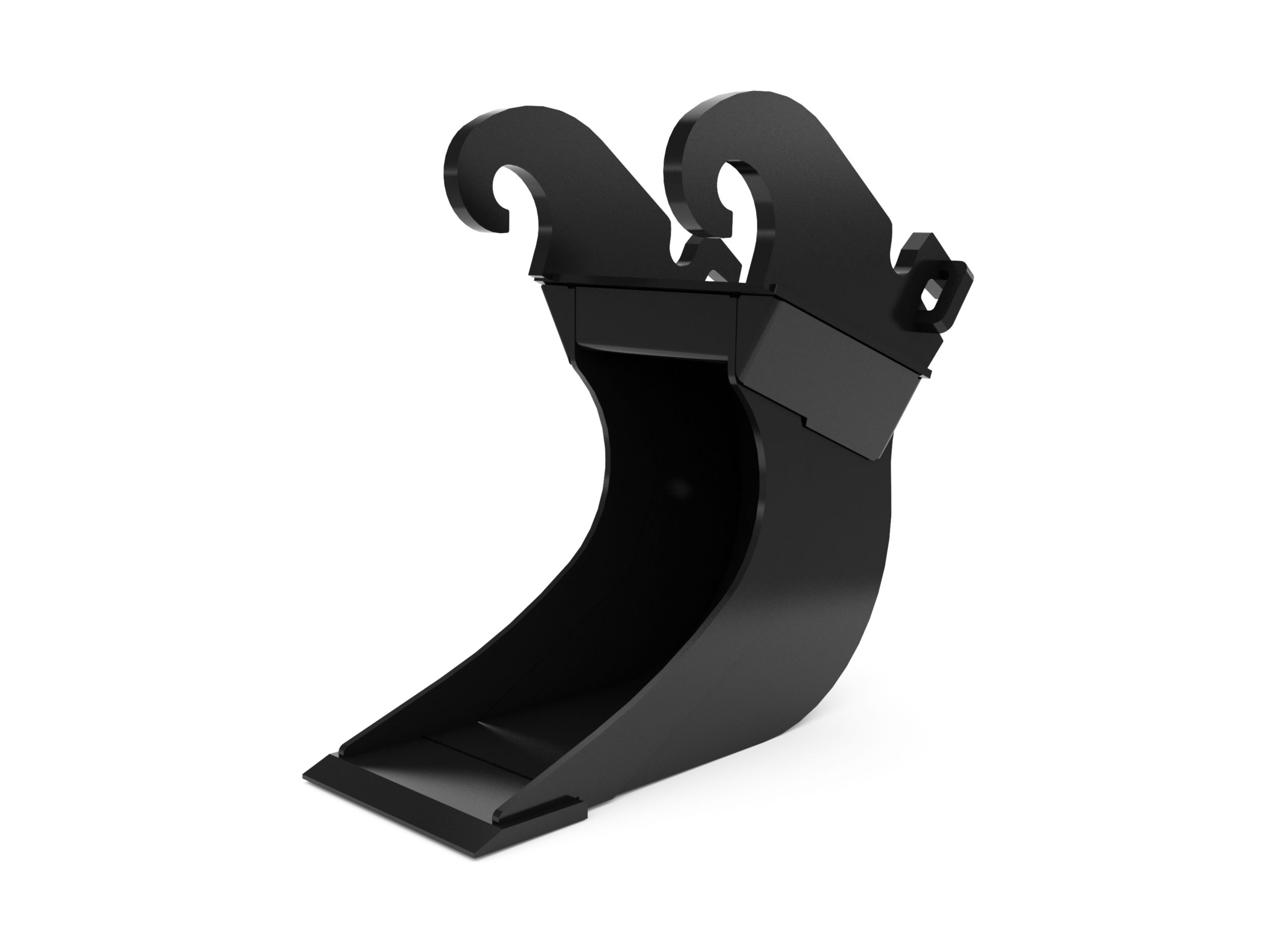 Open side plates and small width are the main characteristics for a banana style trenching bucket. Specific for trenching cohesive materials for easy unloading.