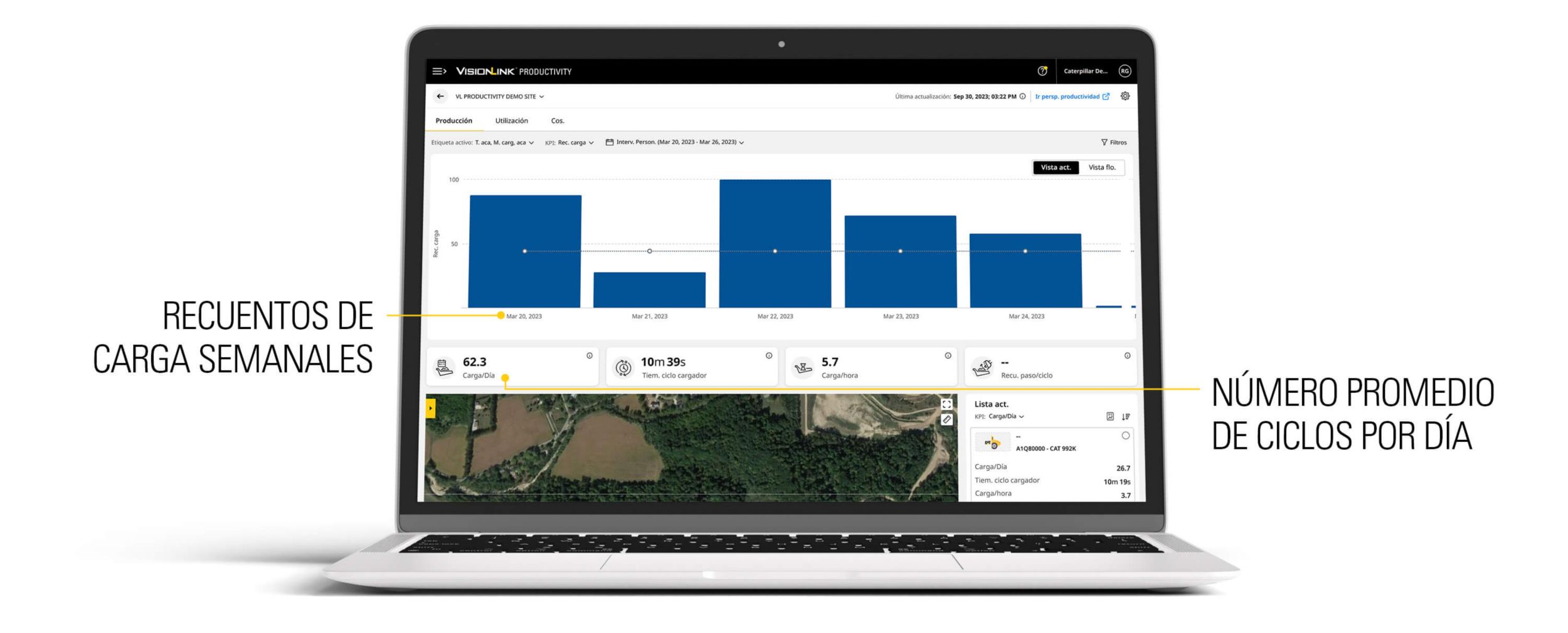 ¿Quieres ver la imagen más detallada posible del conjunto de tus operaciones? Utiliza VisionLink Productivity en combinación con otras tecnologías de Cat, incluyendo VisionLink, Product Link y Payload. También puedes usarlo con equipos más antiguos y flotas mixtas, ya que funciona perfectamente con el dispositivo PL542 Product Link.