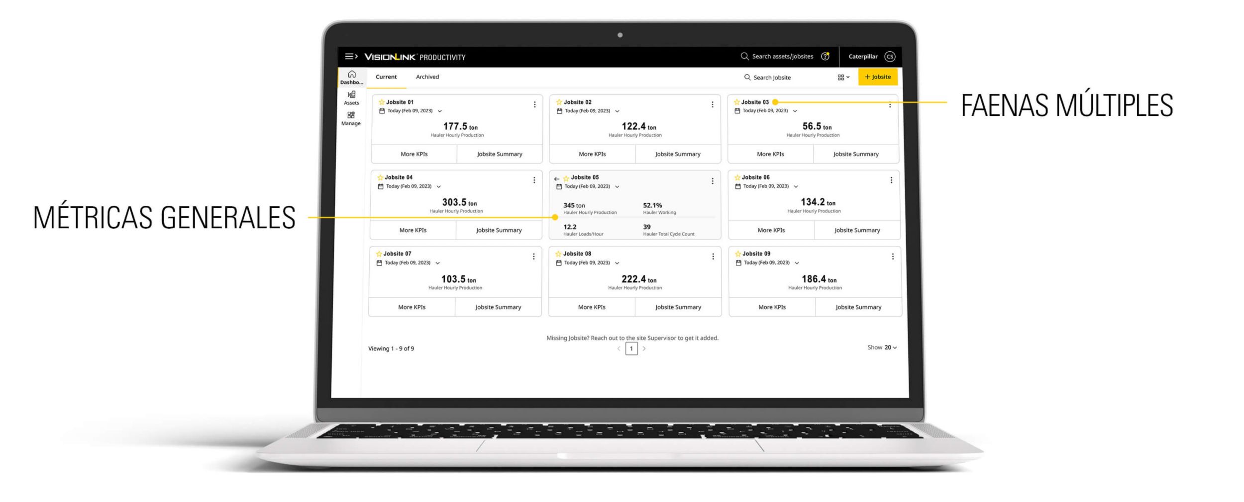 VisionLink® Productivity agrega capacidad a VisionLink. Plataforma basada en la nube, recopila y analiza datos de máquinas y obra para proporcionar una visión integral de la utilización de activos y avance del trabajo. Diseñado para canteras, construcción pesada, agricultura, pavimentación y gestión de residuos, ayuda a mantener cada trabajo al día y en curso.