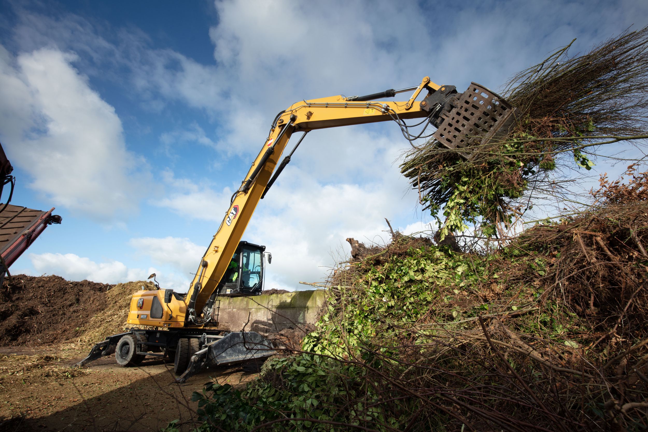 Harm Dijk, qui travaille pour Renewi aux Pays-Bas, avec plus de 30 années d ’ expérience est l ’ heureux conducteur qui a eu la chance de tester la MH3026 Cat. « Mes premières impressions sont que cette machine est parfaite. Elle est très réactive. La rotation de la machine étant super rapide, il y a une visibilité accrue sur la zone environnante depuis la cabine. Et vous disposez d’un levier de commande à la place d’un volant. »