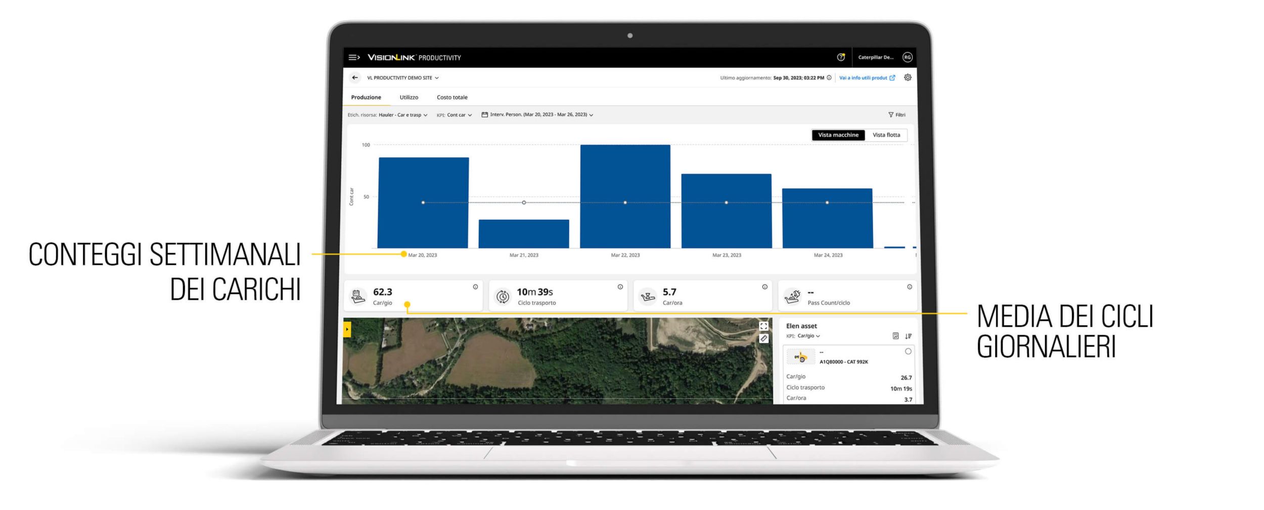 Vuoi conoscere tutti i dettagli possibili della tua attività? Usa VisionLink Productivity in insieme ad altre tecnologie come VisionLink, Product LinkTM e Payload. Puoi utilizzarlo anche con attrezzature più vecchie e flotte miste perché si integra perfettamente con l’hardware di l'hardware de Product Link PL542.