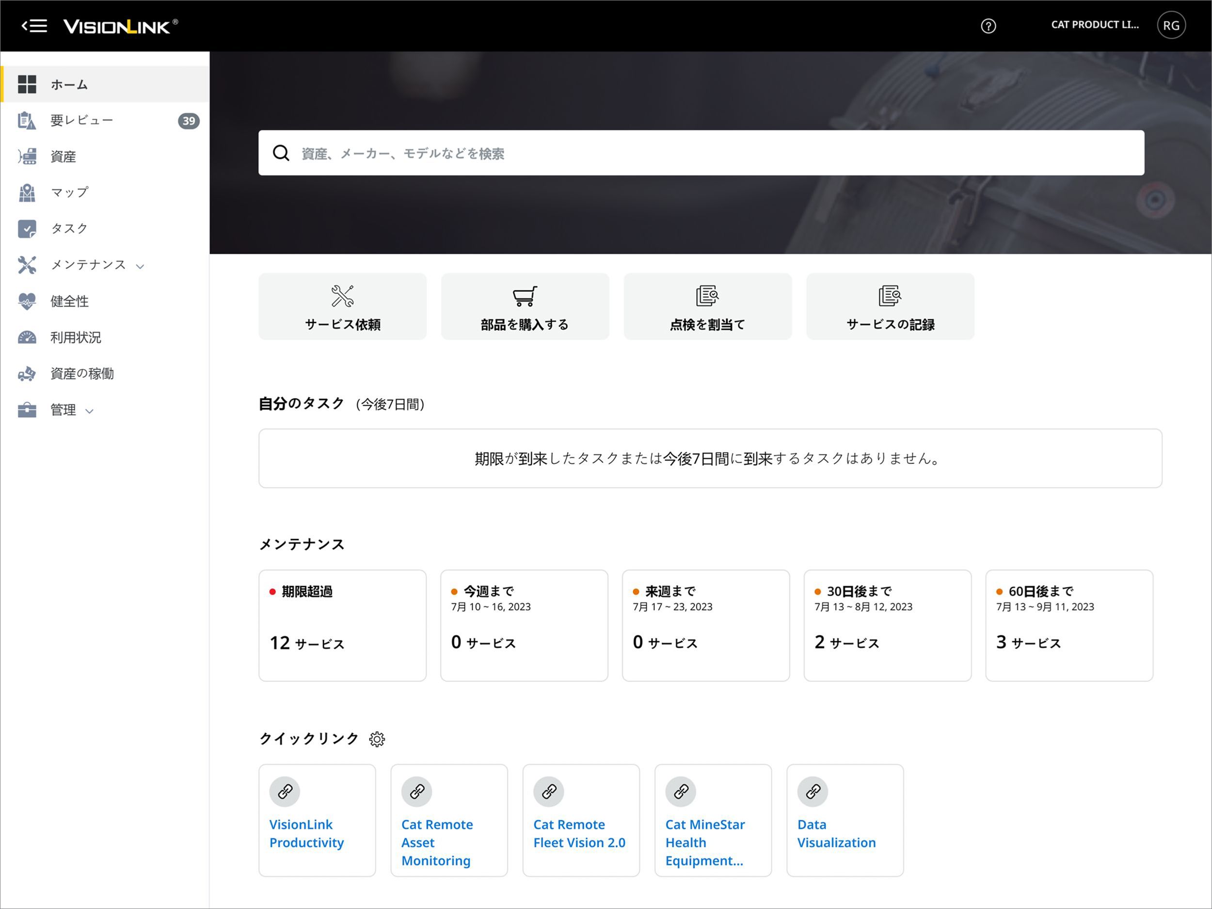 見た目も新しくなり、機能性が効率化されたことで、VisionLink がこれまで以上にアセットデータを利用できるようになり、短時間でもパフォーマンスが一段と向上されました。