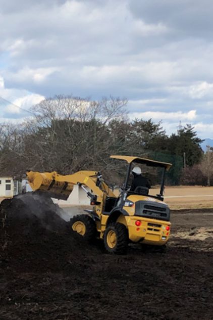 901C2は、良質な堆肥づくりに欠かせない攪拌作業に活用されており、担当の先生からは「これまで堆肥の攪拌は、人力や他のセクションから機械を借りて行っていましたが、いつでも901C2でラクに作業できるようになりました。時間短縮やコスト削減につながり大変助かっています」との言葉をいただきました。同機は農作業以外にも、構内の泥や落ち葉の清掃などに役立っているそうです。