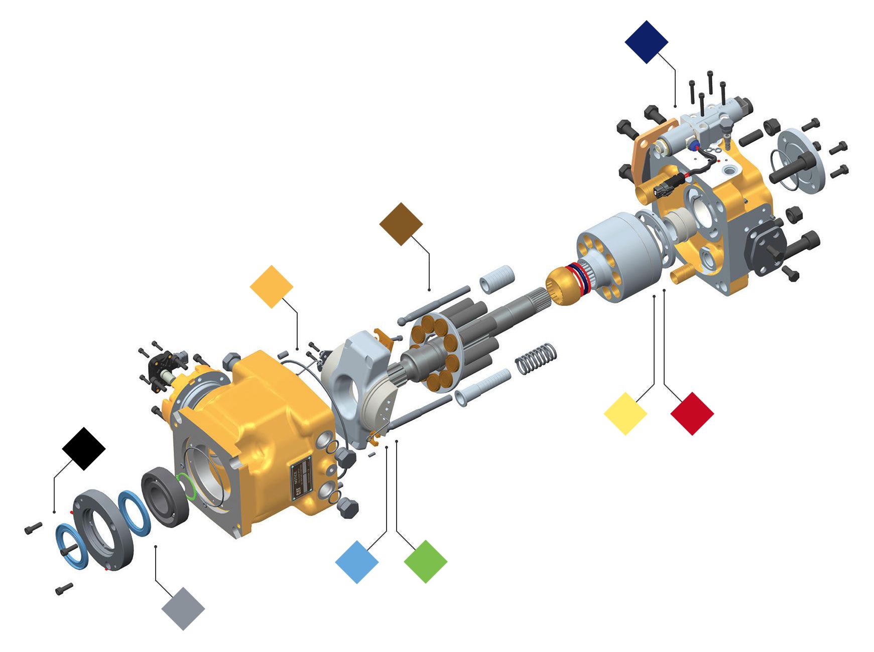 Voldoet standaard aan machinespecificaties waardoor kan worden gewerkt met machinebedieningselementen voor minimale uitvaltijd. Aangepaste spieën, besturingszuigers en smeersysteem ontworpen om de levensduur van pompen te verlengen in Cat toepassingen.