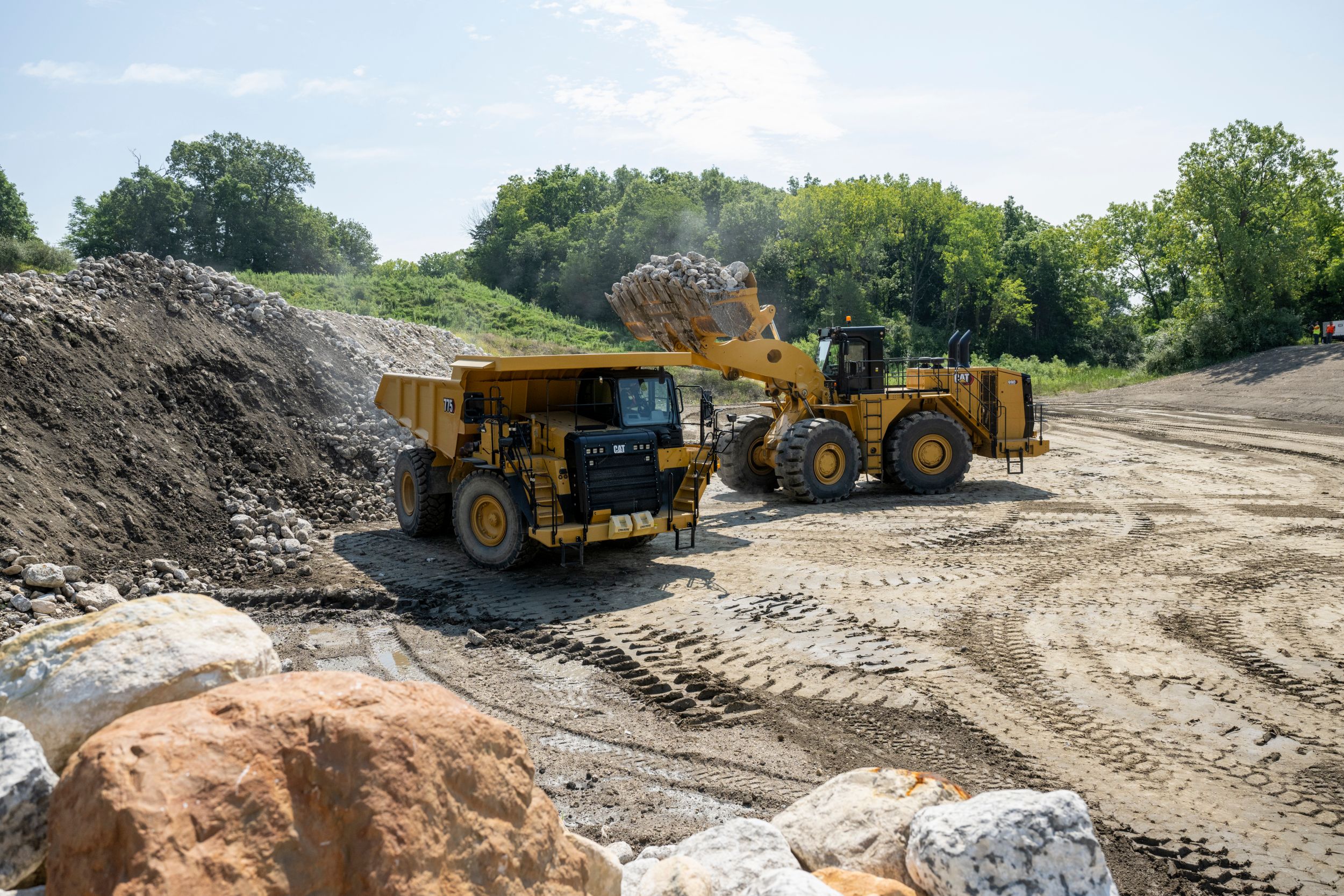 Ładowarka kołowa Cat® 990 pomaga przemieścić więcej materiału w krótszym czasie i przy niskim koszcie w przeliczeniu na tonę, przyspieszając zwrot nakładów na inwestycję. Maszyna zapewnia znaczne oszczędności paliwa oraz ma wytrzymałą konstrukcję umożliwiającą wielokrotne przebudowywanie.
