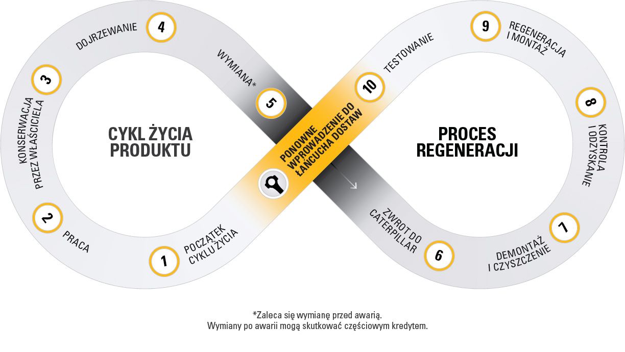 *OŚWIADCZENIA CAT REMAN NA TEMAT ZRÓWNOWAŻONEGO ROZWOJU PRZEDSTAWIAJĄ WPŁYW NA ŚRODOWISKO W USA, PORÓWNUJĄC PROCESY REGENERACJI I PRODUKCJI SILNIKÓW ORAZ KOMPONENTÓW W OBRĘBIE PRZEDSIĘBIORSTWA. W OPARCIU O ZEWNĘTRZNE BADANIE SILNIKÓW, ALTERNATORÓW I TURBOSPRĘŻAREK CAT PRZEPROWADZONE W ROKU 2018. NIE OBEJMUJE WPŁYWU NA POZOSTAŁE OGNIWA ŁAŃCUCHA WARTOŚCI. OŚWIADCZENIA CAT REMAN NA TEMAT OSZCZĘDNOŚCI KOSZTÓW BAZUJĄ NA ZWROCIE KOSZTÓW PODZESPOŁÓW; ZASTOSOWANIE MAJĄ PODSTAWOWE WARUNKI. OFERTA GWARANCYJNA MOŻE SIĘ RÓŻNIĆ W ZALEŻNOŚCI OD MODELU I ZASTOSOWANIA. MOGĄ RÓWNIEŻ OBOWIĄZYWAĆ OGRANICZENIA. ABY UZYSKAĆ SZCZEGÓŁOWE INFORMACJE NA TEMAT OBOWIĄZUJĄCEJ OGRANICZONEJ GWARANCJI CATERPILLAR, NALEŻY SKONTAKTOWAĆ SIĘ Z AUTORYZOWANYM DEALEREM CAT.
