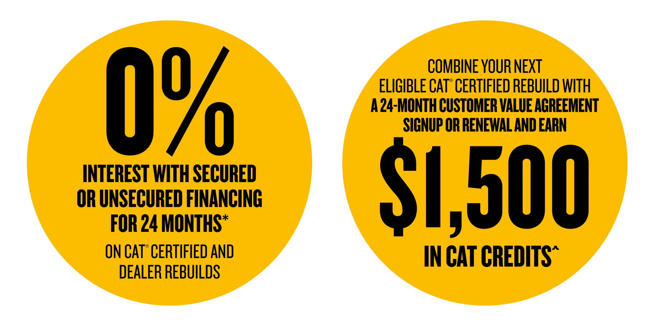 0% FINANCE FOR 24 MONTHS* FOR CAT CERTIFIED & DEALER REBUILDS
