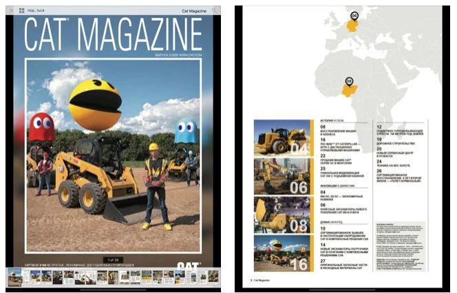 Журнал Cat Magazine — это периодическое издание о продукции Cat®. Основные темы — истории успеха клиентов со всего мира, презентации новых моделей машин и оборудования, события в отрасли, хроника работы дилеров Cat®, объединённых во всемирную сеть и ответственных за техобслуживание машинных парков заказчиков.