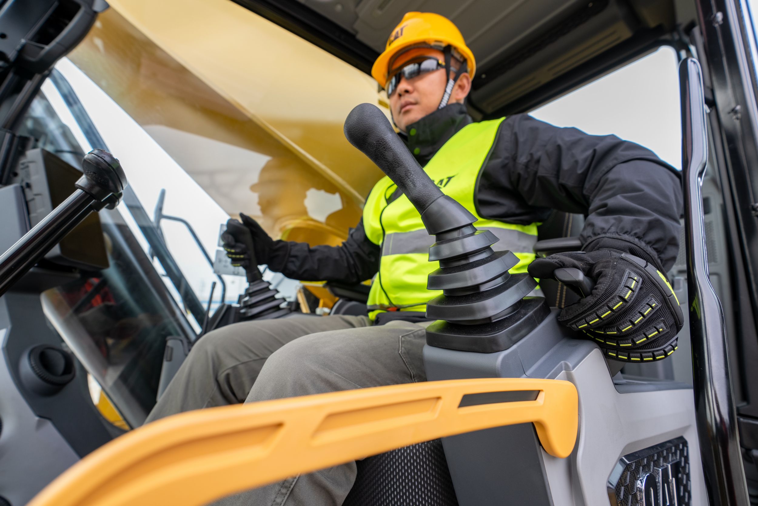 - 使用 Cat® 单手柄,可以更轻松地控制挖掘机移动。只需按下按钮,即可用一只手控制行驶和转向,而无需双手控制操纵杆或双脚踏在脚踏板上。