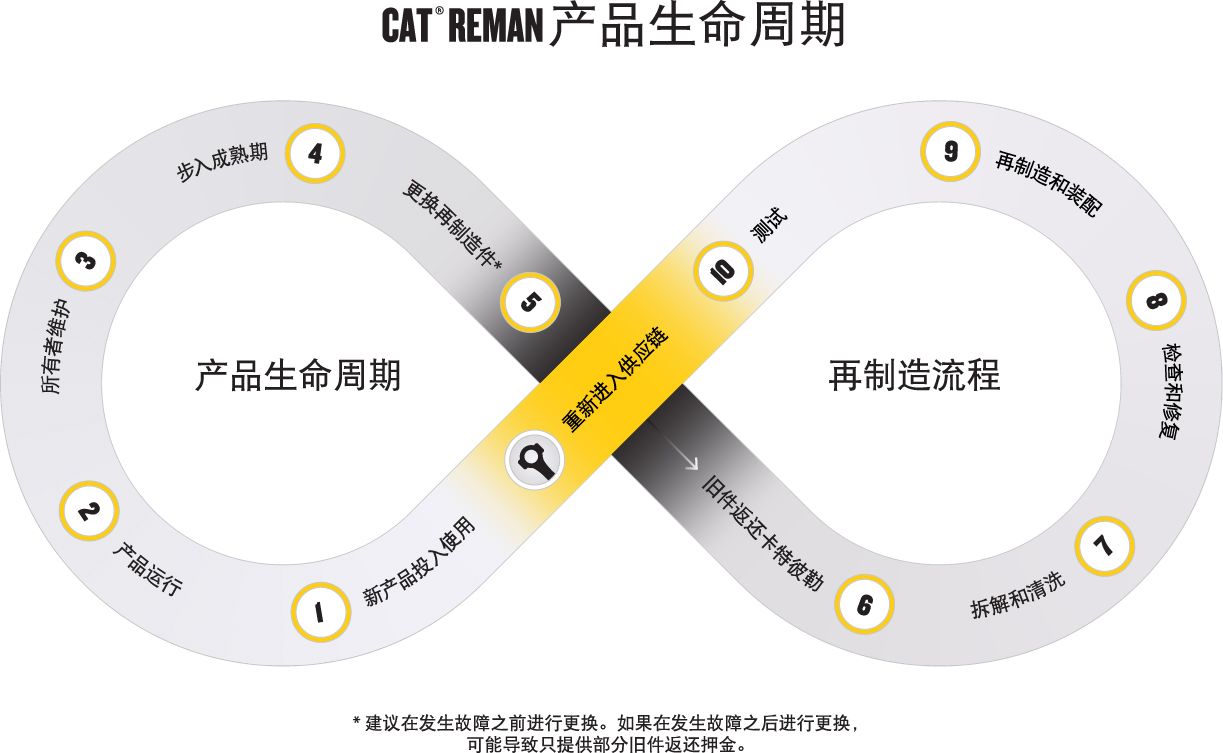 * Cat Reman 可持续性声明以发动机及其部件的“门到门”再制造和一般制造过程对美国环境所产生的不同影响为对比。基于 2018 年 Cat 发动机、交流发电机和涡轮增压器的外部研究。不包括对我们价值链的其他环节的影响。Cat Reman 成本节约声明以旧件退还为基础;成本节约程度依旧件状况而定。保修可能因型号和应用场景而异;可能会有限制条款。有关适用的 Caterpillar Limited Warranty(卡特彼勒有限保修)的完整详情,请联系 Cat(卡特)授权代理商。